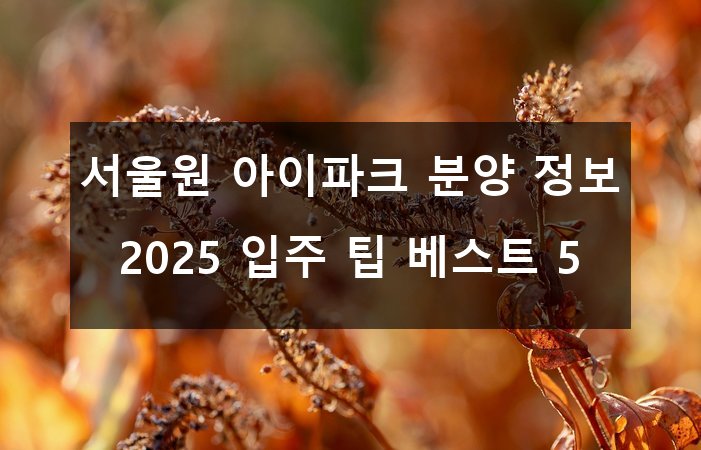 이번 글에서는 서울원 아이파크 분양 정보를 꼼꼼히 살펴보고, 2025년 성공적인 입주를 위한 베스트 5 팁까지 알차게 정리해 드릴게요! 🧳🏙️🎯