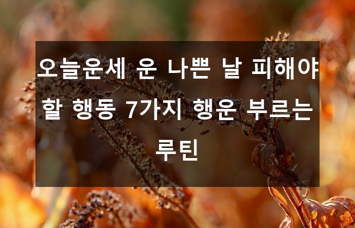 오늘은 운이 나쁜 날 꼭 피해야 할 행동 7가지와 함께, 소소하지만 효과적인 행운 부르는 일상 루틴까지 소개해드릴게요! ✨