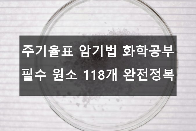 안녕하세요! 🤗 혹시 주기율표의 118개 원소 이름을 외우는 게 너무 어렵다고 느껴본 적 있으신가요? 📚 특히 화학 공부를 시작하는 학생이나 취미로 화학에 관심 있는 분들에게는 외우는 과정이 정말 큰 도전이죠. 그런데 이 어려운 암기를 효과적으로, 그리고 재미있게 할 수 있는 방법이 있다면 어떨까요? 🎉 오늘은 여러분과 함께 주기율표 완전 정복을 위한 최고의 암기법과 꿀팁을 소개해드리겠습니다! 🌈